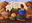 La obra representa a dos figuras femeninas, probablemente madre e hija, sentadas frente a un monumental ramo de calas, enmarcadas por un paisaje de montañas y canastos rebosantes de flores y frutos. La artista conjuga el colorido vibrante con una composición triangular que confiere estabilidad y armonía. El tratamiento volumétrico y la suavidad de los contornos evocan la pintura mural latinoamericana de mediados del siglo XX. La escena, cargada de ternura y dignidad, celebra la conexión entre el trabajo, la tierra y la maternidad.